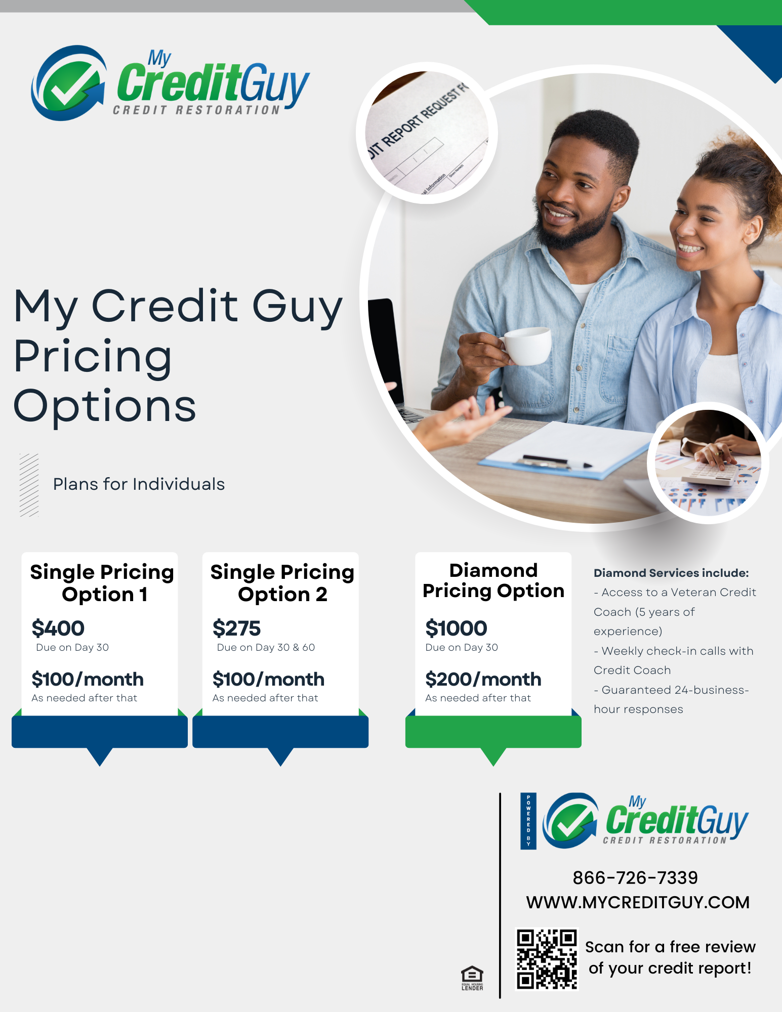 This flyer features the current pricing for My Credit Guy services